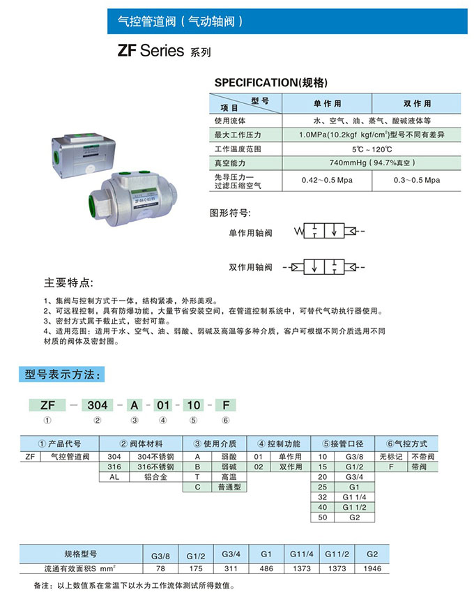 ZF-304,ZF-316,ZF-25,ZFL,ZF-304-01-10,ZF-316-C-02-20,ZF-AL-C-01-32,氣控管道閥