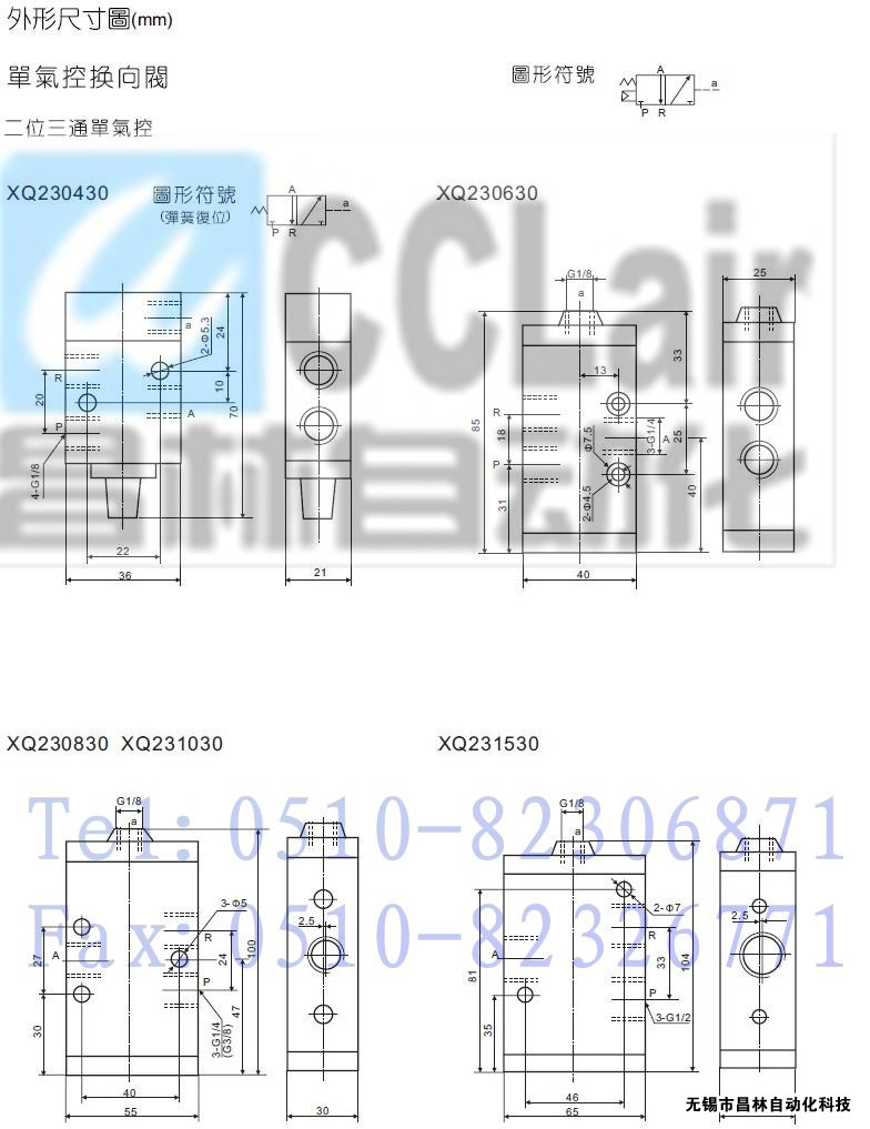 XQ250830,XQ251030,XQ251530,XQ231431,XQ231631,XQ231831,XQ231031,二位三通/五通、三位五通氣控換向閥