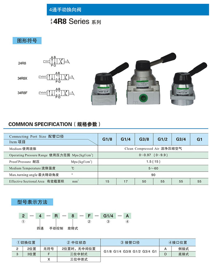 34R8X-G1/8,34R8X-G1/4,34R8X-G3/8,34R8X-G1/2,34R8X-G3/4,34R8X-G1,34R8X-G1/8-A,4通手動換向閥 |