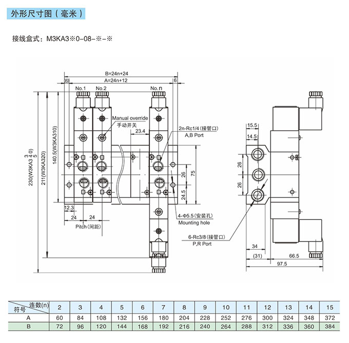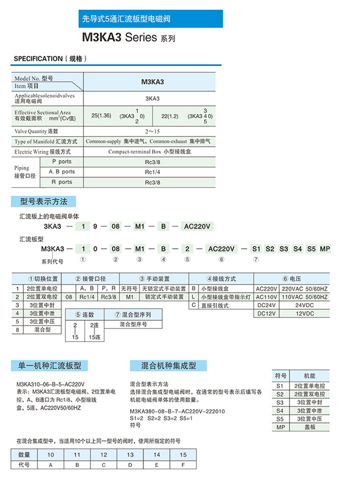 3KA319-08,3KA329-08,3KA339-08,3KA349-08,3KA359-08,3KA389-08,3KA319-08-B,先導(dǎo)式5通匯流板型電磁閥
