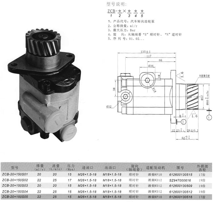 ZCB-20*150S01,ZCB-20*150S02,ZCB-20*150S03,ZCB-20*150S04,ZCB-20*150S05,轉(zhuǎn)向齒輪泵