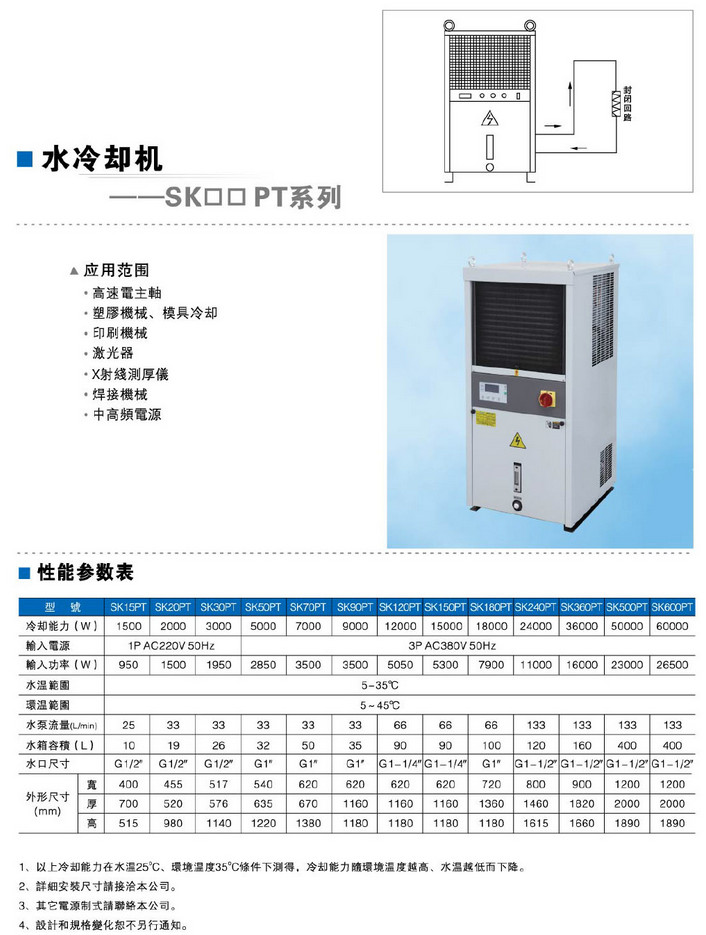 SK15PT,SK20PT,SK30PT,SK50PT,SK70PT,SK90PT,SK120PT,SK150PT,SK180PT,水冷卻機(jī)