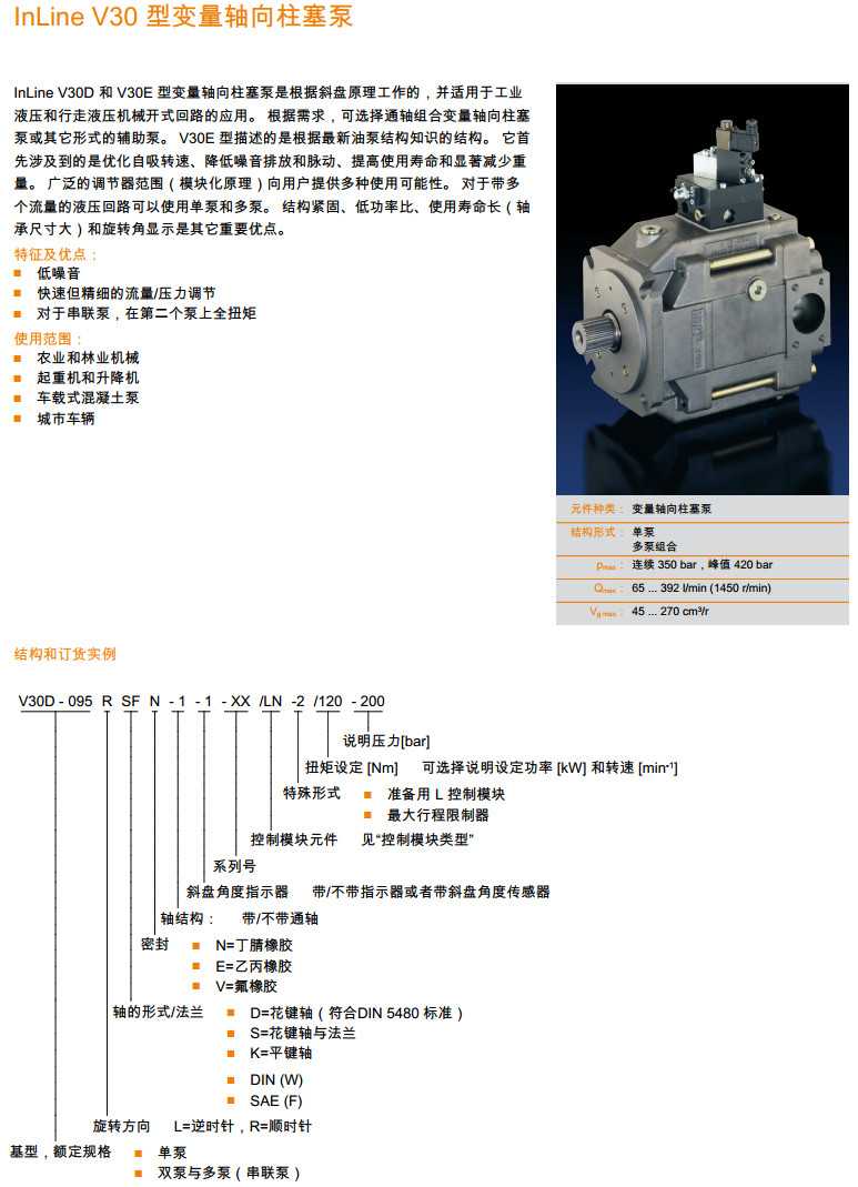 V30E-095LSFN-1,V30E-160RSFN-1,V30E-270RSFE-1,V30E-045LSFV-1,變量軸向柱塞泵