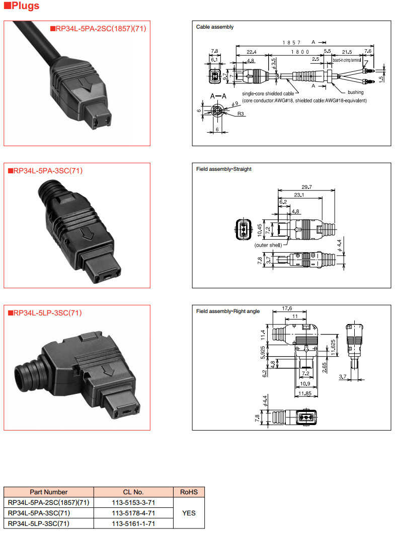 RP34L-5R-2PD,RP34L-5R-3PD,RP34L-5PA-2SC,RP34L-5PA-3SC