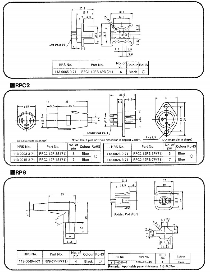 RPC1-12P-6S,RPC1-12RB-6P,RPC2-12P-7S,RPC2-12RB-3P,RP9-7R-4S,hirose連接器