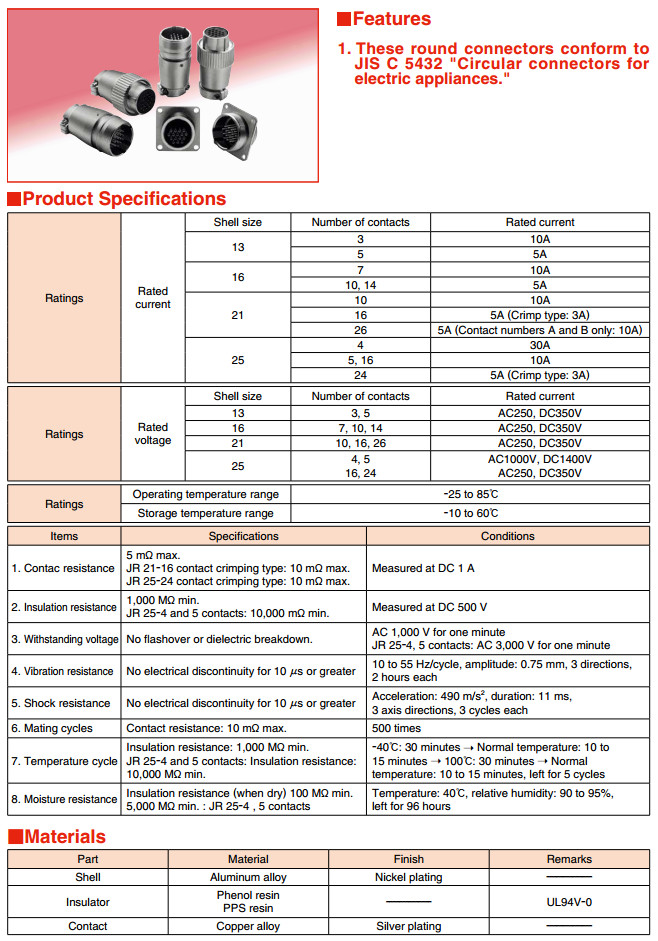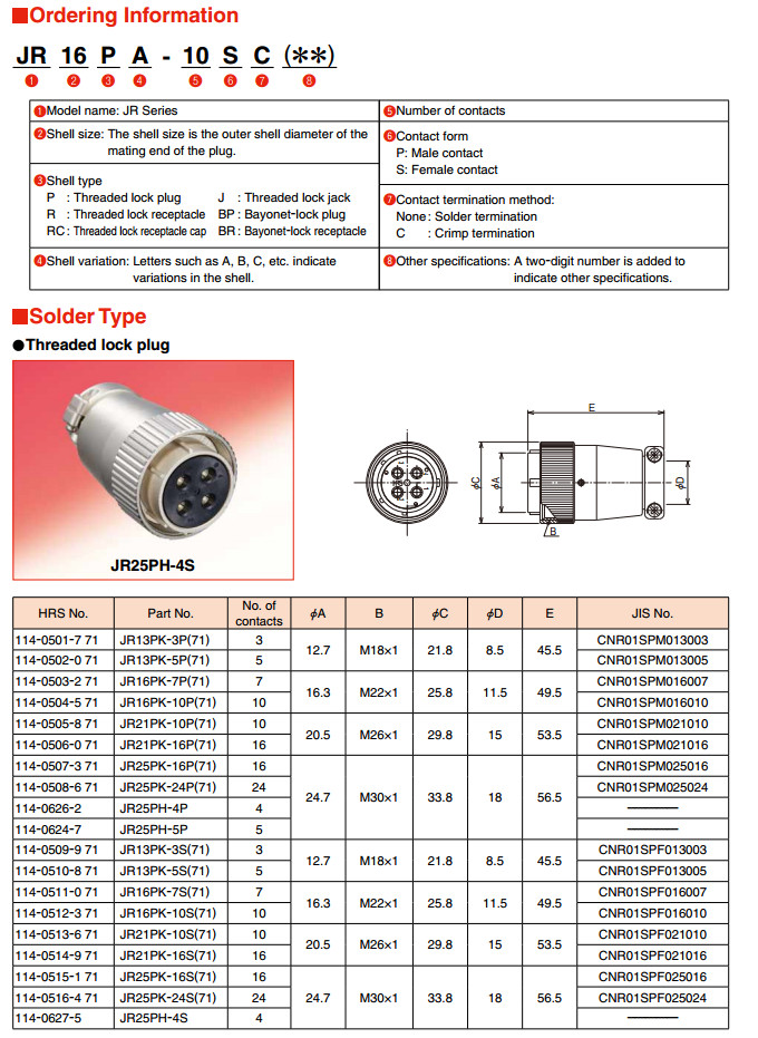 JR13PK-5P,JR16PK-7P,JR16PK-10P,JR21PK-10P,JR21PK-16P,JR25PK-16P,JR25PK-24P,