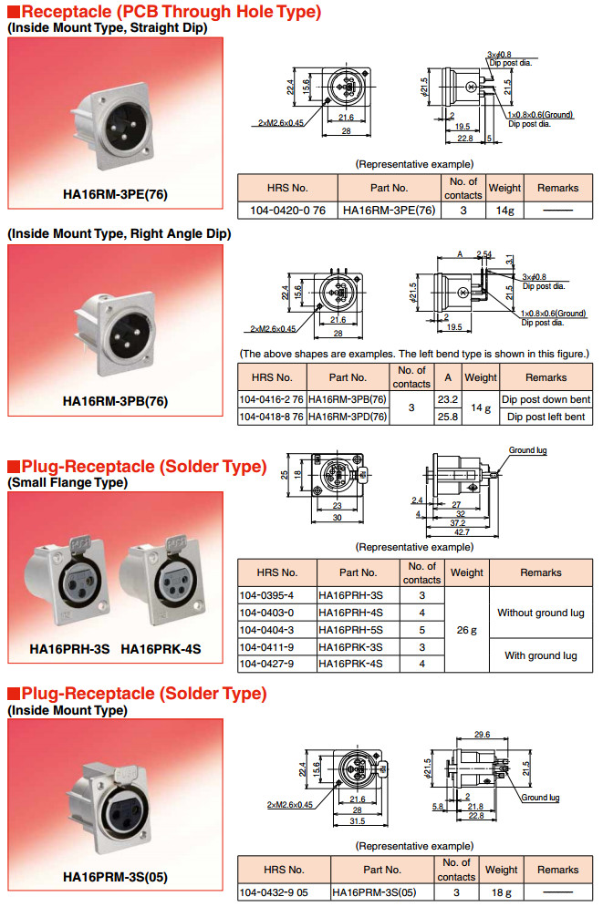 HA16PA-3S,HA216J-3P,HA16R-3P,HA16PRH-3S,HA16PRN-3SE-A,HA16PRK-3S,hirose連接器