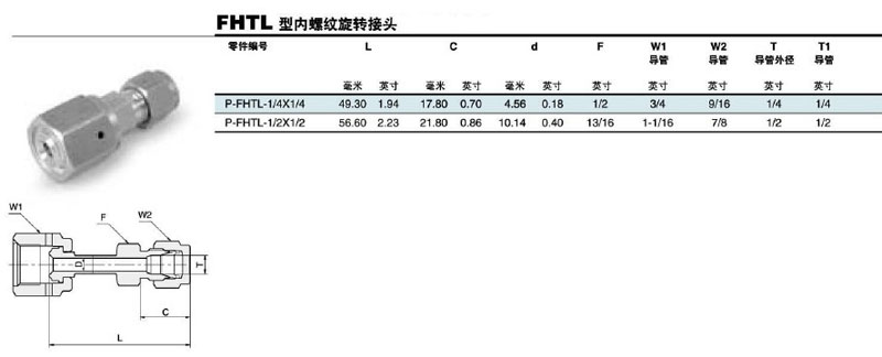 P-FHTL-1/4*1/4,P-FHTL-1/2*1/2