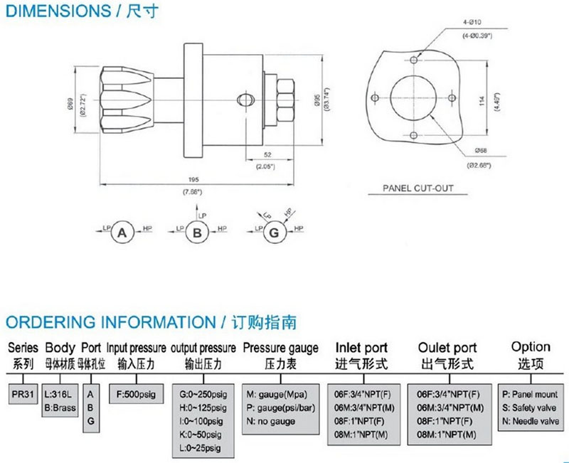 PR31LA-F-G-M,PR31LB-F-H-M,PR31LG-F-I-P,PR31LA-F-K-N,減壓閥