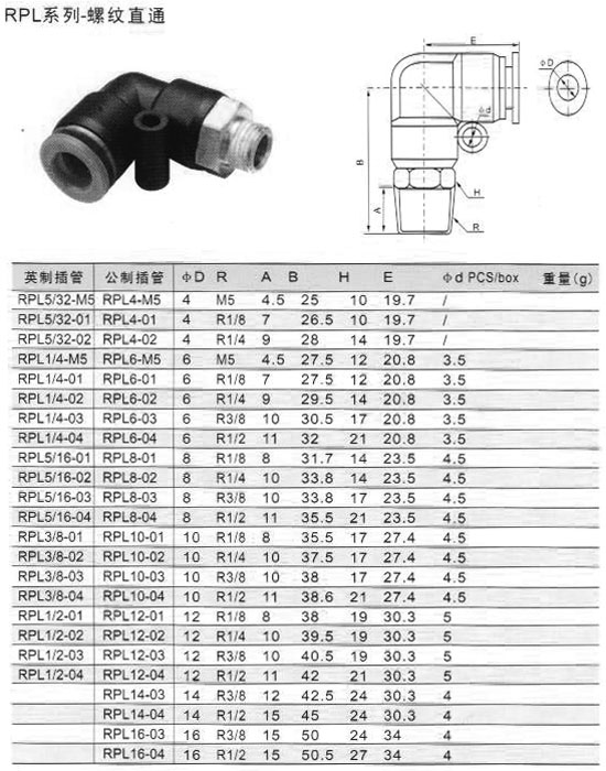 RPL5/32-M5,RPL1/4-01,RPL3/8-02,RPL1/2-01,RPL4-M5,RPL6-03,RPL8-01,