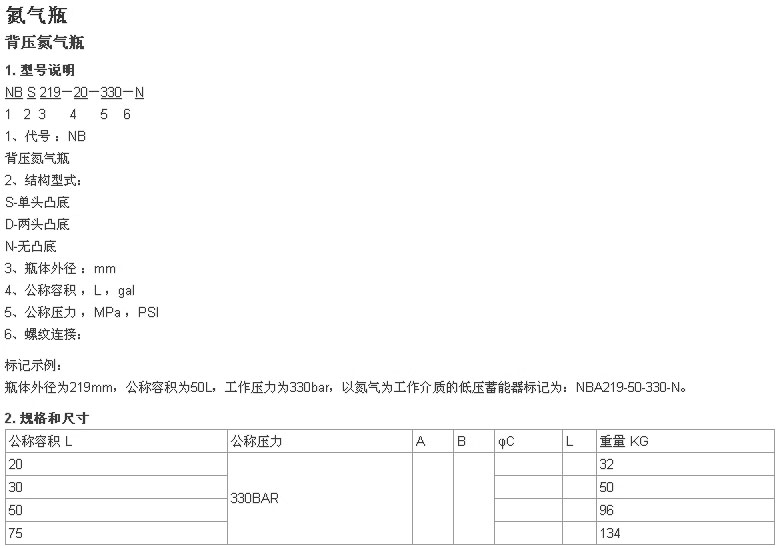 NBS219-20-330-N,NBD219-30-330-N,NBS219-50-330-N,NBS219-75-330-N,氮?dú)馄?/span>