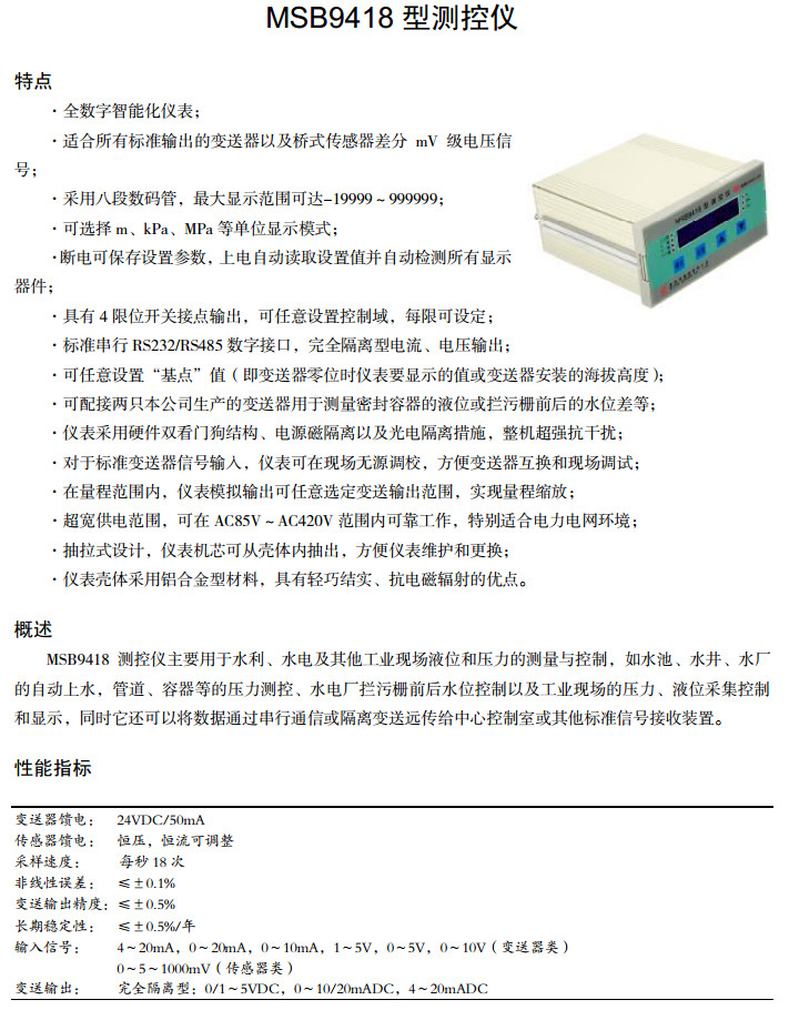 MSB9418E-A,MSB9418E-B,MSB9418E-C,MSB9418E-D,測(cè)控儀
