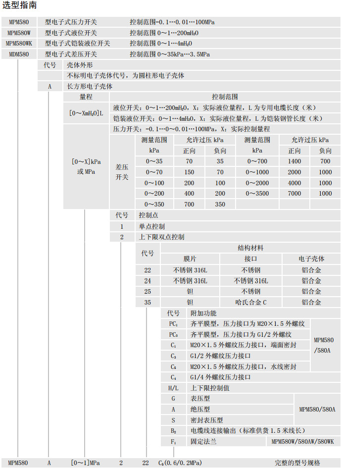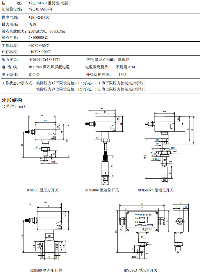 MPM580A,MPM580WA,MPM580WKA,MDM580A,液位開關(guān)