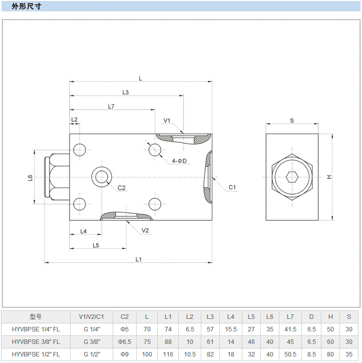 HYVBPSE 1/4" FL,HYVBPSE 3/8" FL,HYVBPSE 1/2" FL,單先導(dǎo)式單向閥