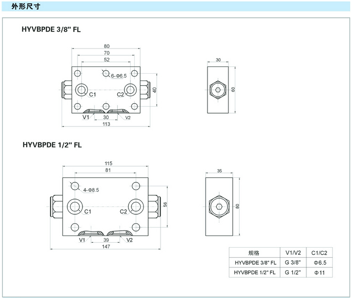 HYVBPDE 3/8" FL,HYVBPDE 1/2" FL,先導(dǎo)式雙單向閥