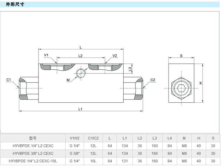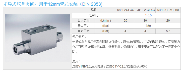 HYVBPDE 1/4" L2 CEXC,HYVBPDE 3/8" L2 CEXC,HYVBPDE 1/4" L2 CEXC-10L,先導(dǎo)式雙單向閥