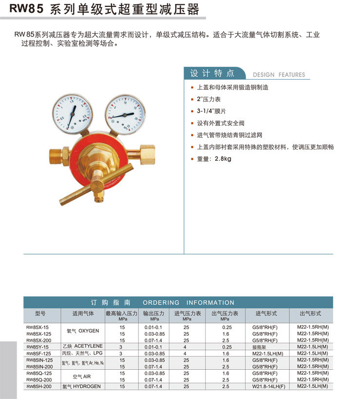 RW85X-15,RW85X-125,RW85X-200,RW85Y-15,RW85F-125,RW85IN-125,RW85Q-125,RW85Q-200,RW85H-200,單級式超重型減壓器 |