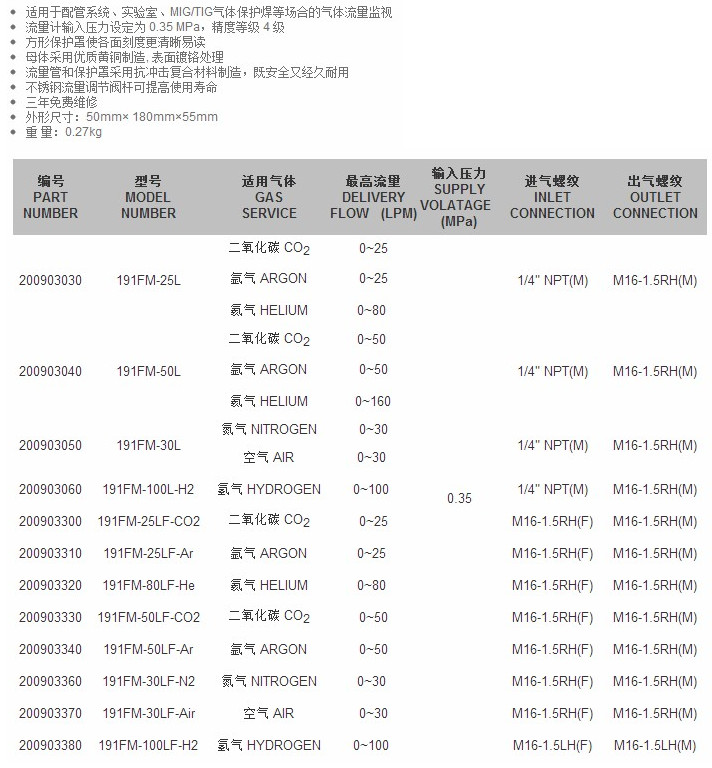 191FM-25L,191FM-50L,191FM-30L,191FM-100L-H2,191FM-25LF-CO2,氣體流量計 |