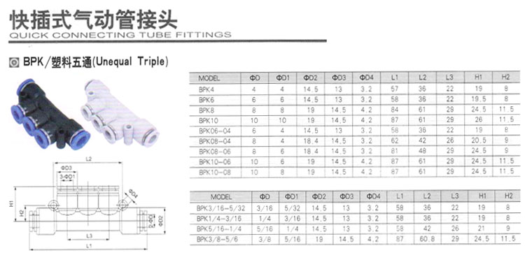 BPK4,BPK6,BPK8,BPK10,BPK3/16-5/32,BPK1/4-3/16,BPK5/16-1/4,BPK3/8-5/6,快插式氣動(dòng)管接頭