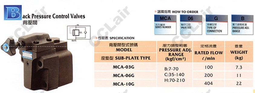 MCA-03G,MCA-06G,MCA-10G,MCA-10G-H,MCA-03G-C,MCA-06G-B,ASHUN油順背壓閥
