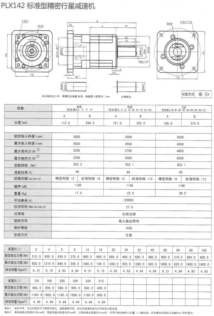 PLX142-L1-3-S2-P2,PLX142-L2-12-S1-P2,PLX142-L3-80-K-P2,精密行星減速機 |