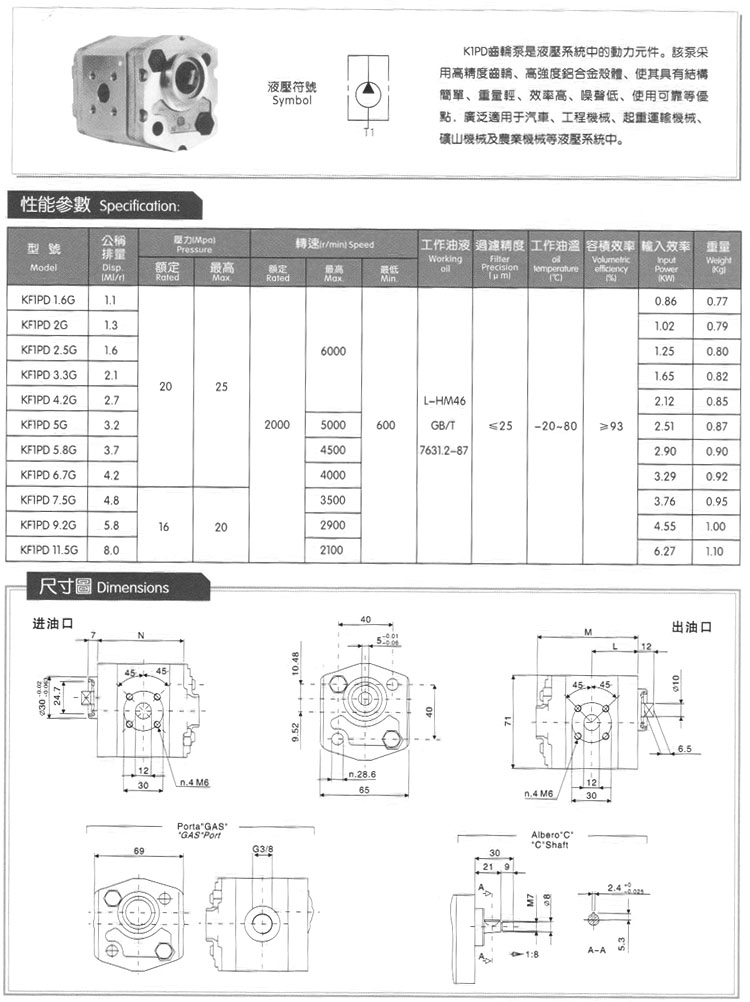 KF1PD1.6G,KF1PD2G,KF1PD2.5G,KF1PD3.3G,KF1PD4.2G,KF1PD5G,KF1PD5.8G,高壓齒輪油泵