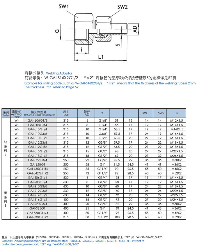 W-GAI-L06M10X1,W-GAI-L38M48X2,W-GAI-L12-3/8NPT,W-GAI-L25-1NPT, |