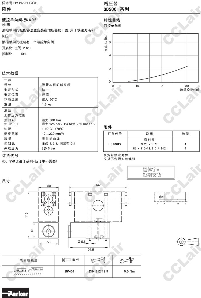 SD500A06V,SD500B06V,Parker增壓器