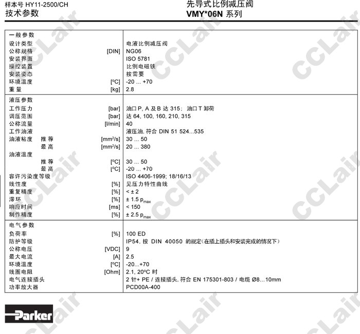 VMY064K06,VMY100K06,VMY160K06,VMY210K06,VMY315K06,Parker先導(dǎo)式比例減壓閥 |