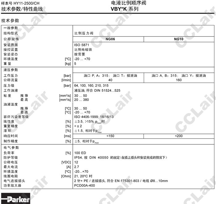 VBY064K06N,VBY100K06N,VBY160K06N,VBY210K06N,VBY315K06N,VBY064K10N,VBY100K10N,Parker電液比例順序閥 |