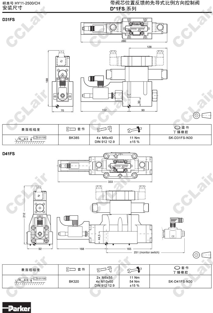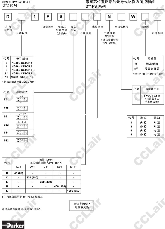 D31FS,D41FS,D81FS,D91FS,D111FS,D31FSE01B1NLW0,D41FSE01C1NLW0,Parker先導(dǎo)式比例方向控制閥