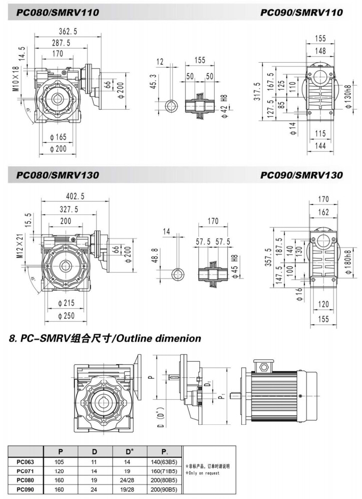 PC063-SMRV040,PC071-SMRV090,PC080-SMRV130,PC090-SMRV110,斜齒蝸輪減速器