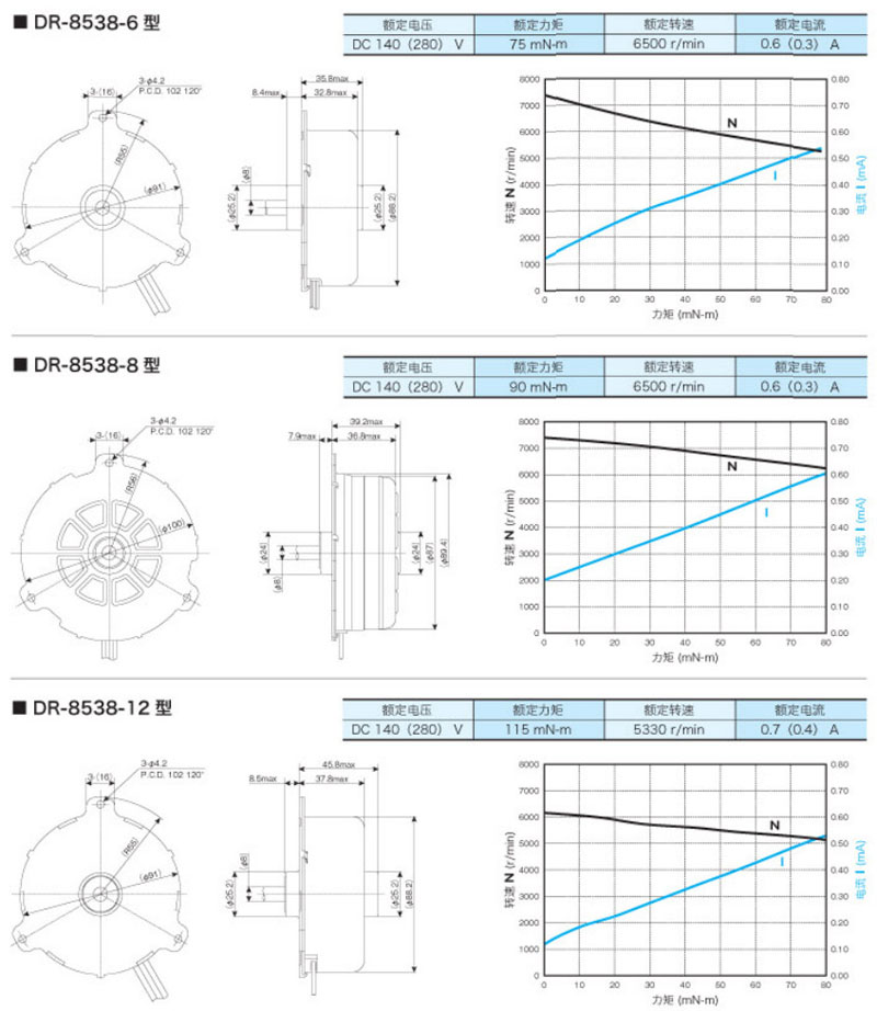 DR-8538-6,DR-8538-8,DR-8538-12,DR-8838,DR-9538,內(nèi)轉(zhuǎn)子直流無刷馬達(dá)