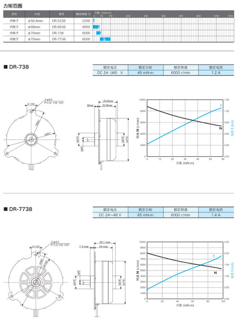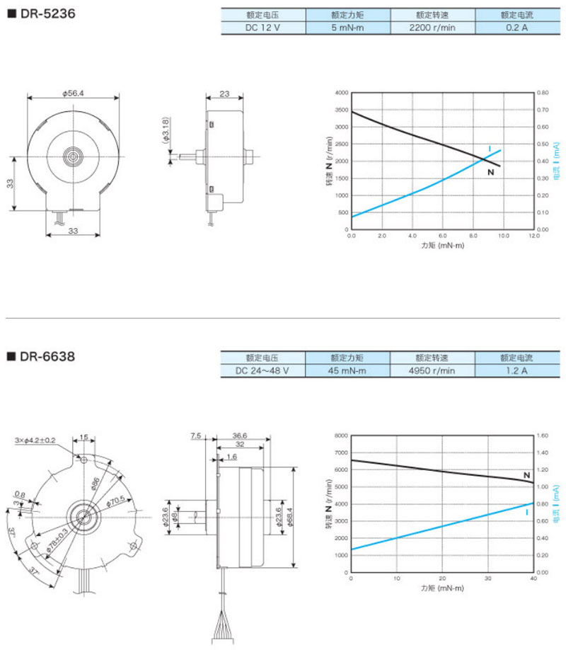 DR-5236,DR-6638,DR-738,DR-7738,內轉子直流無刷馬達
