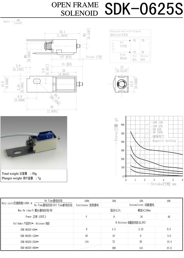SDK-0625S-6A,SDK-0625S-12A,SDK-0625S-24A,SDK-0625S-48A,直動(dòng)電磁鐵