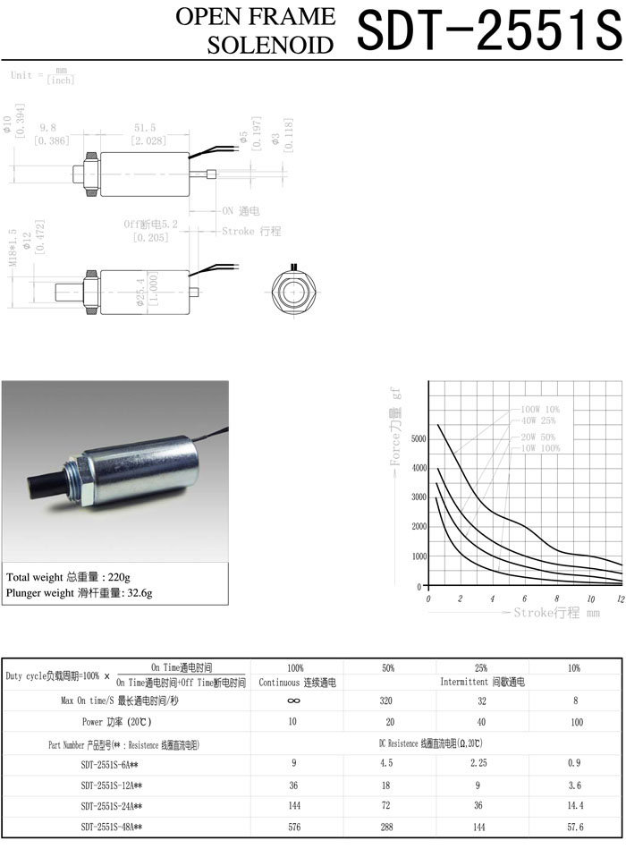 SDT-2551S-6A,SDT-2551S-12A,SDT-2551S-24A,SDT-2551S-48A,直動(dòng)電磁鐵