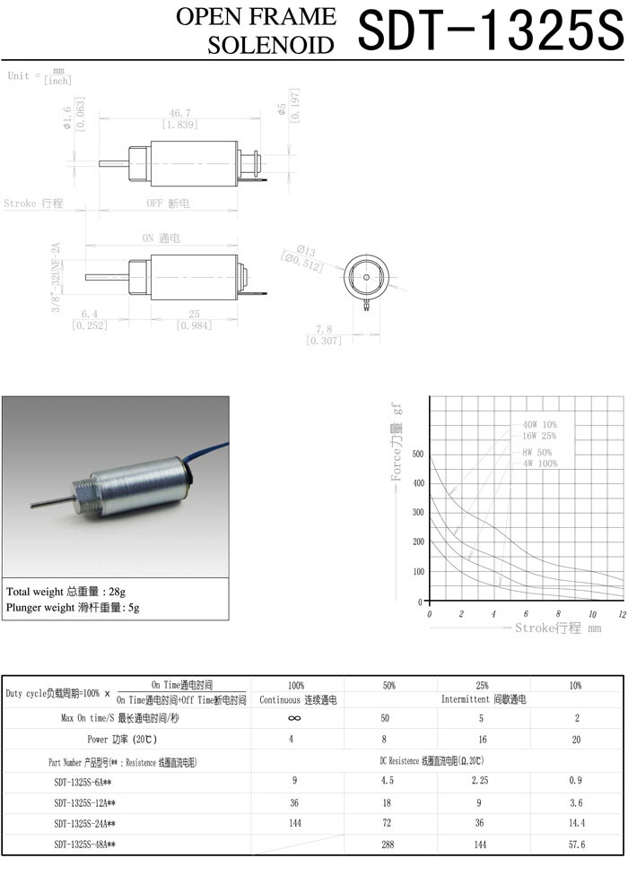 SDT-1325S-6A,SDT-1325S-12A,SDT-1325S-24A,SDT-1325S-48A,直動電磁鐵 |