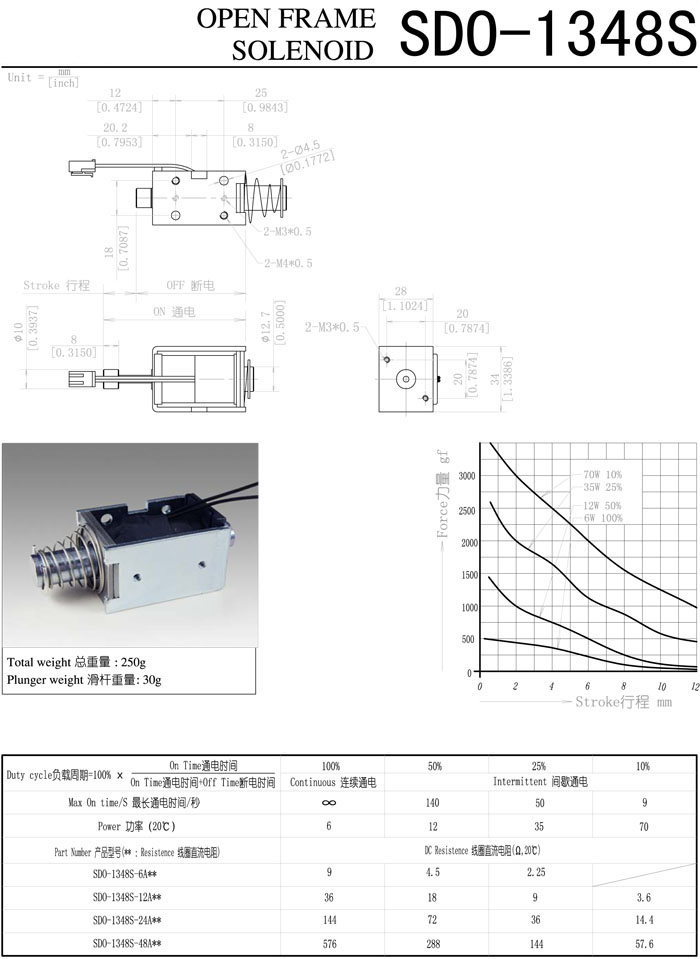 SDO-1348S-6A,SDO-1348S-12A,SDO-1348S-24A,SDO-1348S-48A,直動(dòng)電磁鐵