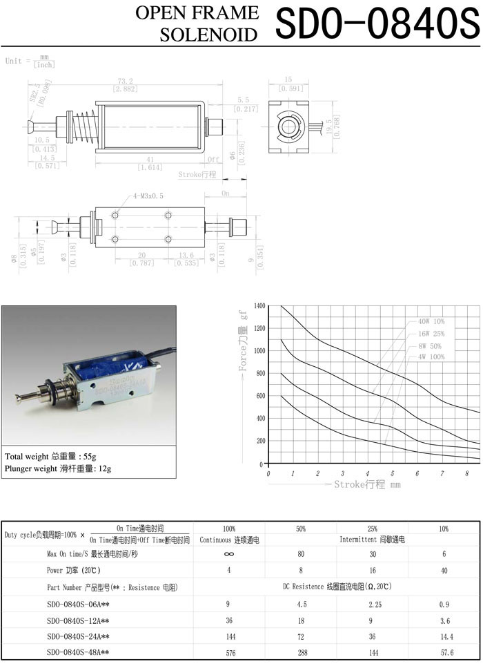 SDO-0840S-06A,SDO-0840S-12A,SDO-0840S-24A,SDO-0840S-48A,直動(dòng)電磁鐵