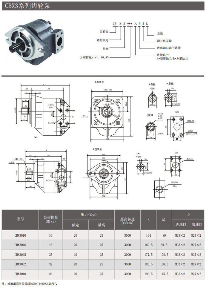 CBX3010AFJL,CBX3016AFJL,CBX3025AFJL,CBX3032AFJL,CBX3040AFJL,CBX3010ABJL,CBX3016ABJL,齒輪泵