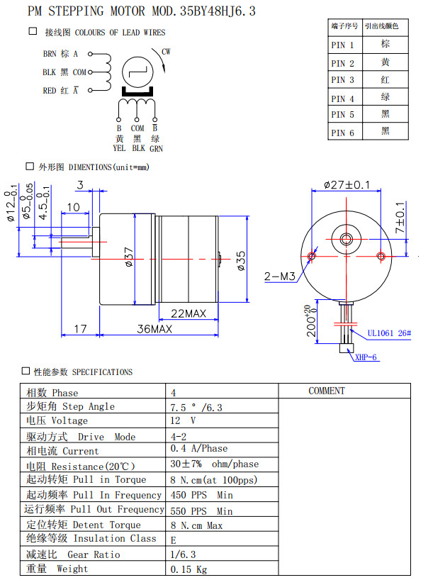 35BY48HJ4.5,35BY48HJ6.3,35BY48HJ11B,35BY48HJ17.5,精密減速步進電機