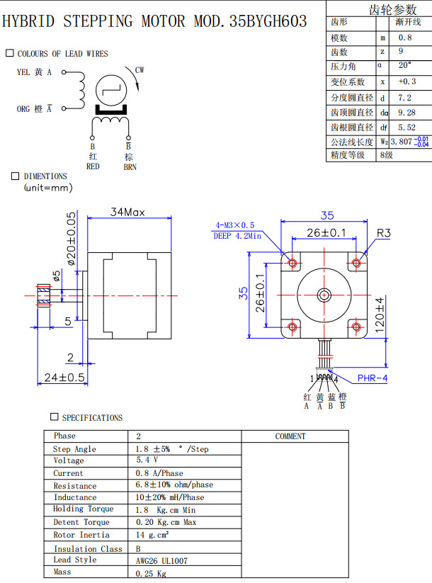 35BYGH317,35BYGH327,35BYGH603,35BYGH308,35BYGH326,混合式步進電機