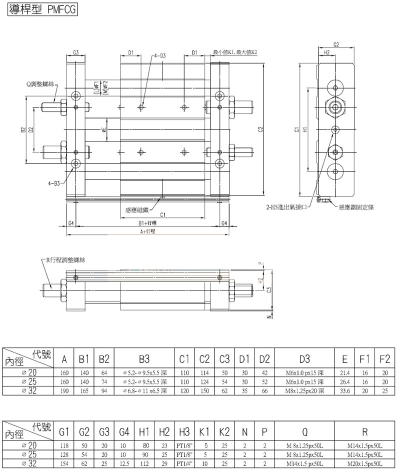 PMFCP-20,PMFCP-32,PMFCG-20,PMFCG-32,PMFCH-20,PMFCH-32,panix磁浮式無(wú)桿氣缸