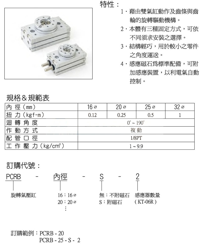 PCRB-16,PCRB-20,PCRB-25,PCRB-32,panix旋轉(zhuǎn)氣壓缸