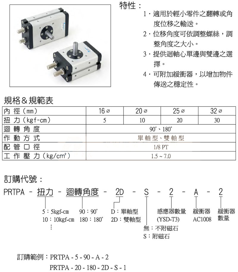 PRTPA-5-90,PRTPA-10-90,PRTPA-20-180,PRTPA-30-180,panix回轉(zhuǎn)氣缸