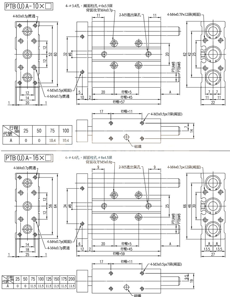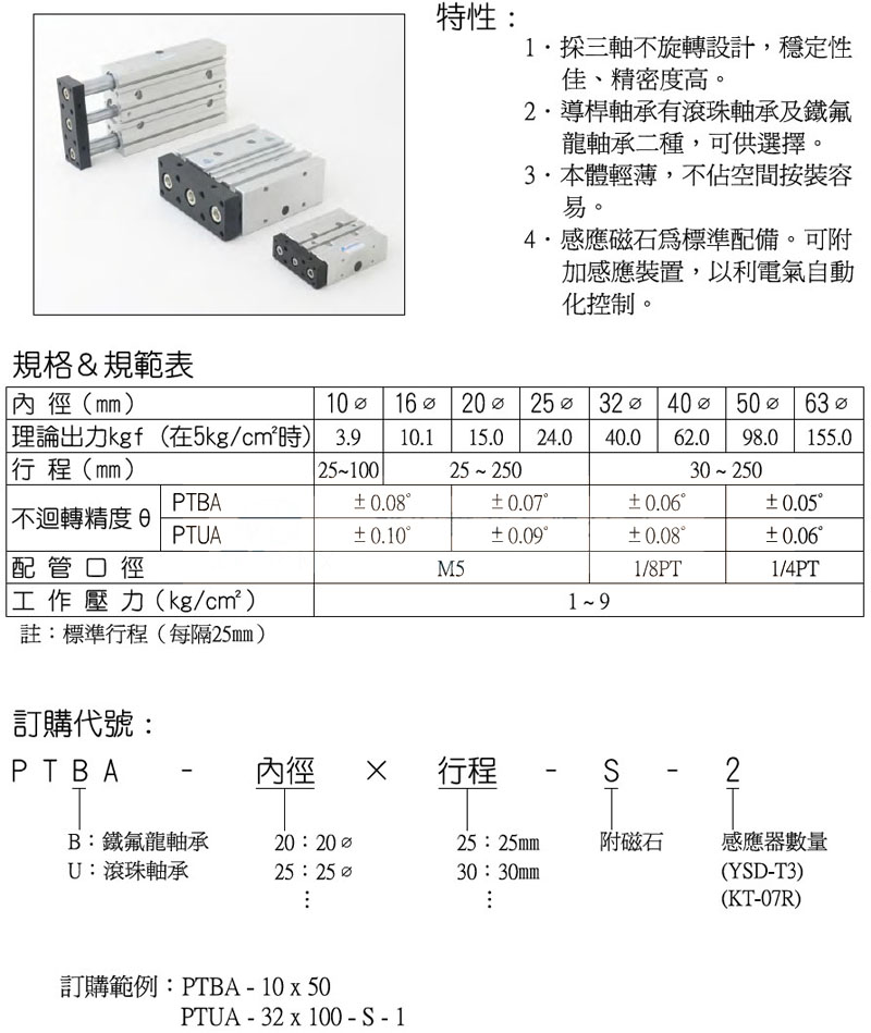 PTBA-10,PTBA-20,PTBA-32,PTBA-40,PTUA-10,PTUA-20,PTUA-32,panix導桿薄型氣缸