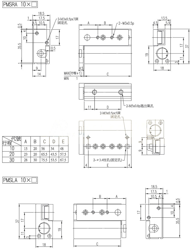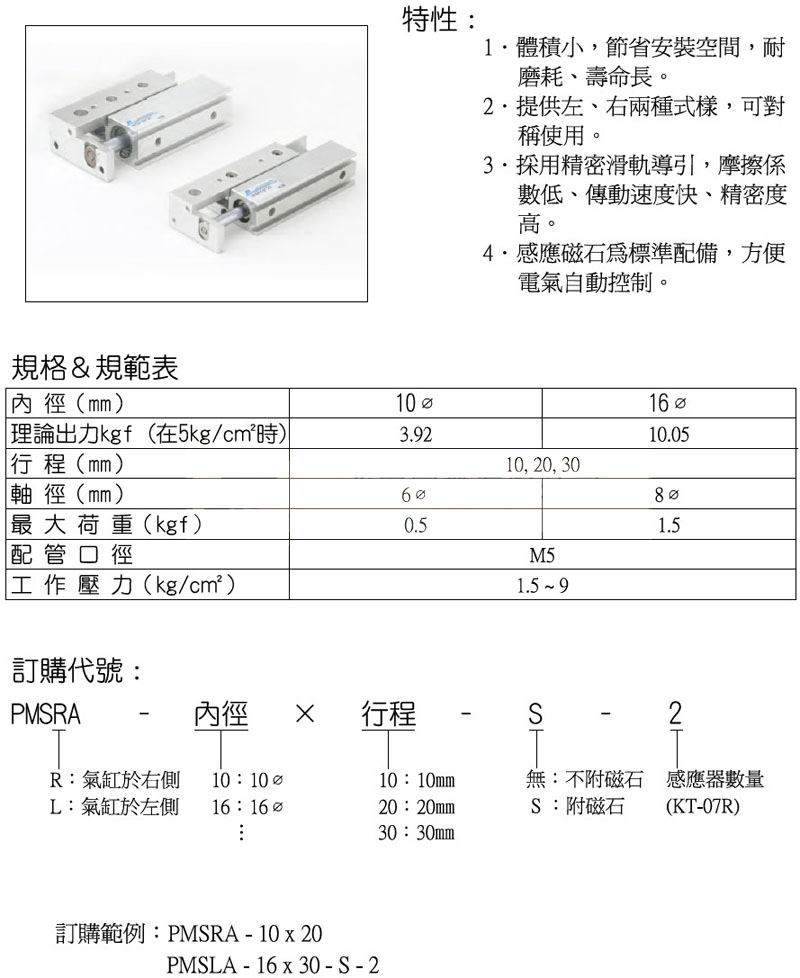 PMSRA-10*10,PMSRA-16*10,PMSLA-10*10-S-2,PMSLA-16*10-S-2,panix滑座氣缸 |