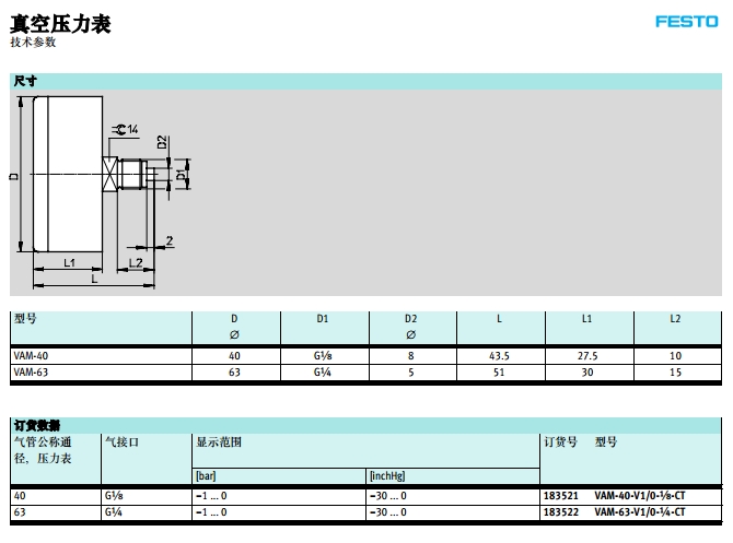 VAM-40-V1/0-1/8-CT,VAM-63-V1/0-1/4-CT,festo真空壓力表