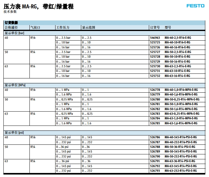 MA-40-2.5-R1/8,MA-50-10-R1/4,MA-63-16-R1/4-MPA-E-RG,festo壓力表