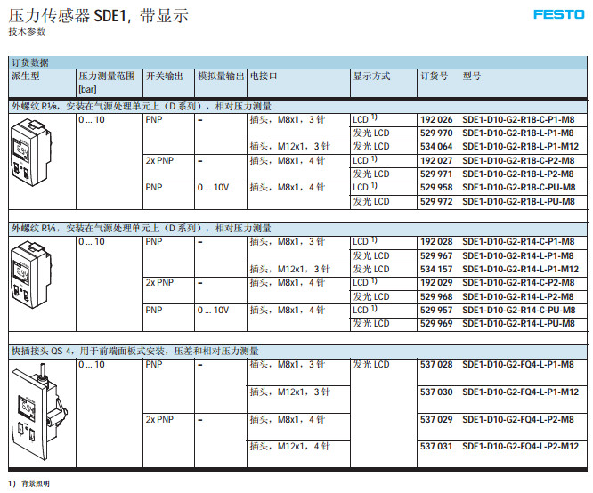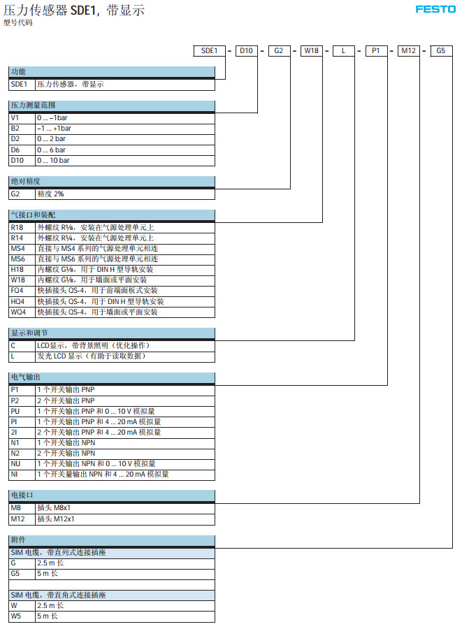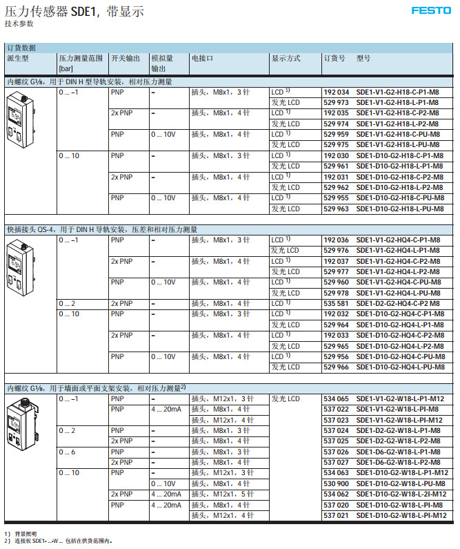 SDE1-V1,SDE1-B2,SDE1-D2,SDE1-D6,SDE1-D10,festo壓力傳感器